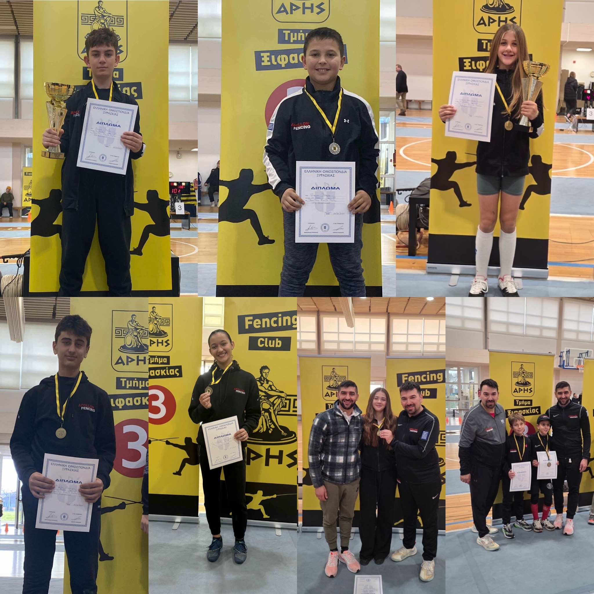 Με δυο Χρυσά, ένα Ασημένιο και πέντε Χάλκινα μετάλλια για τον Σύλλογό μας ολοκληρώθηκε το 3οΠανελλήνιο Κύπελλο «ΑΡΗΣ» στην Θεσσαλονίκη στο όπλο της Σπάθης, σε ατομικό επίπεδο που πραγματοποιήθηκε το Σαββατοκύριακο 20 & 21 Δεκεμβρίου 2025 στο Κλειστό Γυμναστήριο Καλαθοσφαίρισης «Αμερικάνικης Γεωργικής Σχολής», υπό την αιγίδα της Α.Σ. ΑΡΗΣ ΘΕΣΣΑΛΟΝΙΚΗΣ και της Ελληνικής Ομοσπονδίας Ξιφασκίας (ΕΟΞ) και συγκεκριμένα: